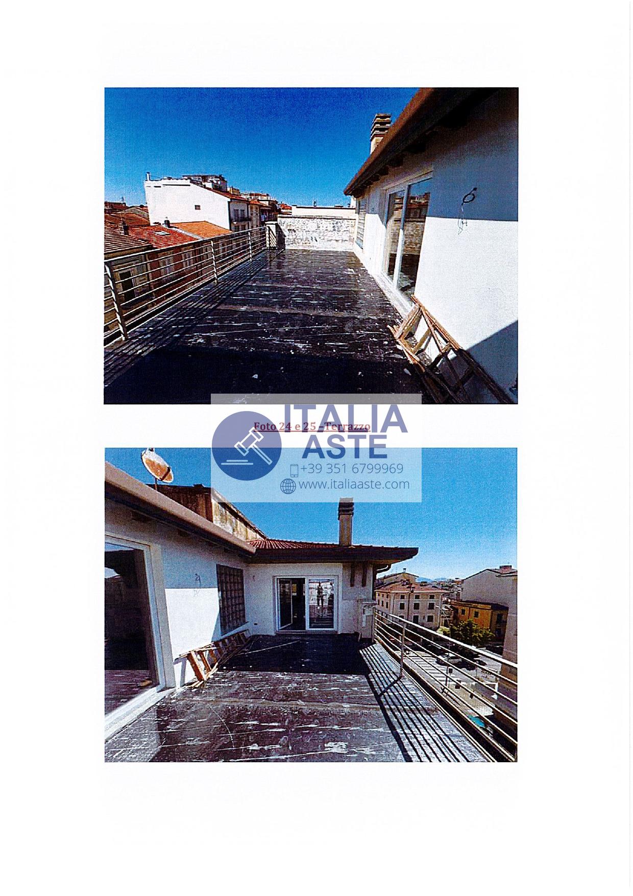 L’unità immobiliare oggetto di valutazione è un attico situato al piano terzo ed ultimo di un fabbricato condominiale ubicato in posizione angolare tra Via Leonardo da Vinci e Viale Buonarroti, nel Comune di Viareggio (LU), a poche decine di metri dal lungomare. L’edificio, risalente alla metà agli anni Cinquanta, si sviluppa su quattro piani fuori terra ed è composto da unità commerciali al piano terreno e residenziali ai piani superiori. L’accesso al condominio avviene tramite loggia chiusa con portone in legno e vetro decorato, posta su Via Leonardo da Vinci n. 50. Il vano scala, in buone condizioni generali, presenta pavimentazione in marmo e ringhiere in ferro e vetro. Le pareti risultano intonacate e tinteggiate, e l’ambiente beneficia di illuminazione naturale grazie a finestre distribuite lungo la tromba delle scale. L’appartamento si sviluppa su un unico livello principale, oltre a un piccolo vano accessorio nel sottotetto, ed è attualmente oggetto di un intervento di ristrutturazione in fase avanzata. I lavori già eseguiti comprendono il rifacimento integrale degli impianti, la posa della pavimentazione in gres porcellanato lucido di grande formato, l’installazione di nuovi infissi esterni in PVC con vetrocamera e la realizzazione dei controsoffitti con predisposizione per l’illuminazione a incasso. La distribuzione interna attuale prevede un’ampia zona giorno open space con angolo cottura, caratterizzata da copertura inclinata e travi a vista in ferro, con accesso diretto alla terrazza una camera da letto matrimoniale con bagno finestrato interno un vano sottotetto ad uso studio, illuminato da due lucernari, e dotato di un piccolo w.c. di servizio. Completa la proprietà una terrazza esclusiva di circa 30 mq, con affaccio aperto su Via Leonardo da Vinci e vista mare laterale. La terrazza è ben esposta, gode di buona privacy ed è direttamente accessibile dalla zona giorno, costituendo un importante elemento di valorizzazione dell’immobile grazie alla vivibilità e alla possibilità di utilizzo come spazio esterno attrezzabile.PERCHÉ SCEGLIERE NOI?