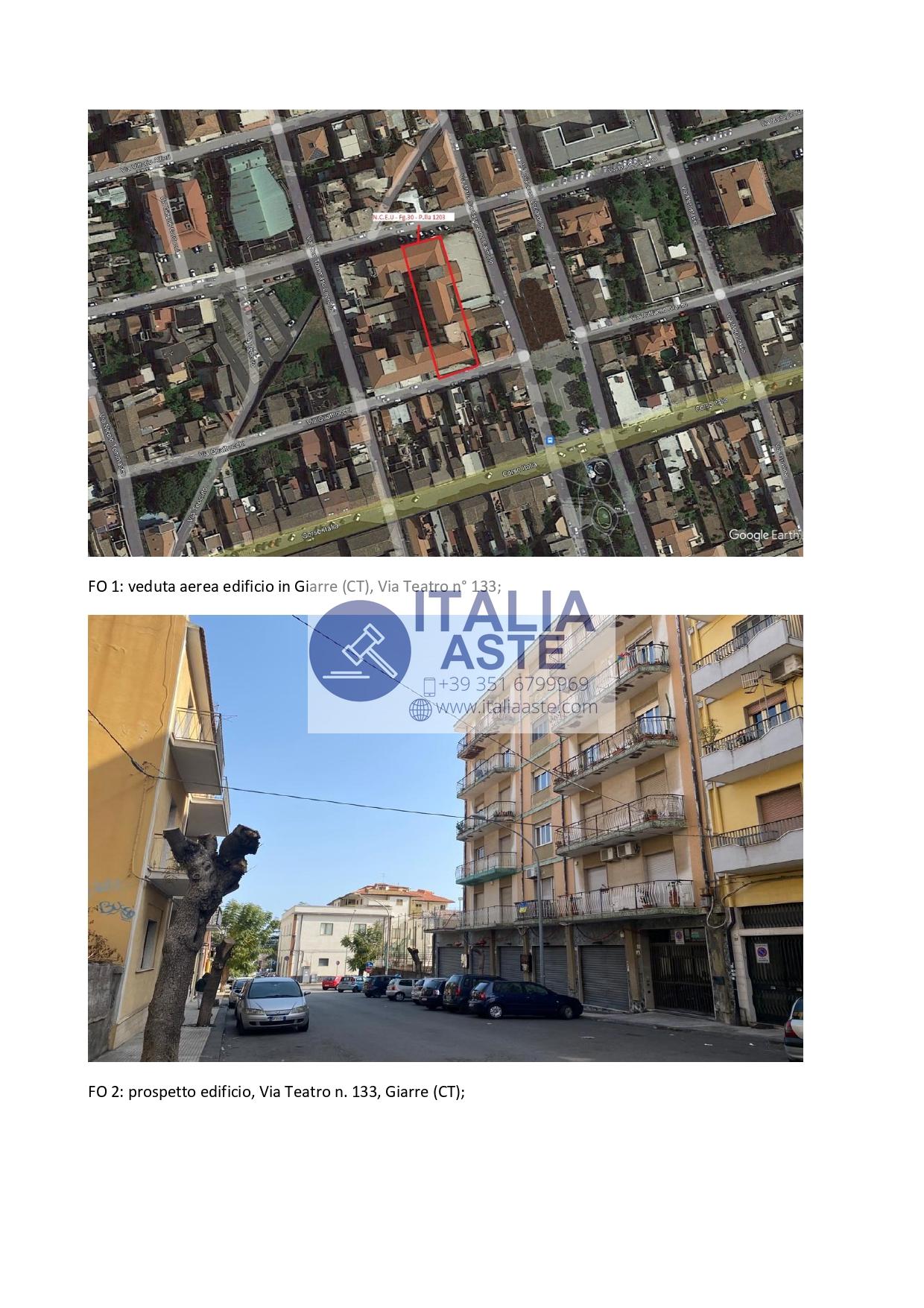 Diritto di piena proprietà su appartamento per civile abitazione posto al piano quinto, sito in Giarre, Via Teatro n. 133, censito al NCEU di detto Comune, al foglio 30, part.1203, sub.39, categoria A/2, vani 7.