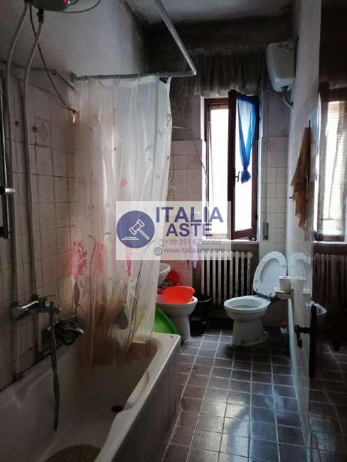 Trattasi di appartamento collocata al piano primo lato ovest dell’edificio, è accessibile al piano terra dal vano scala di uso comune appartenente all’edificio adiacente censito alla particella n.213 non oggetto di stima. L’unità immobiliare di fatto è una porzione abitativa appartenente ad un più ampio alloggio la cui restante parte ricade all’interno dell’edificio adiacente non oggetto di stima; la stessa si sviluppa in senso longitudinale per una superficie totale di circa 68,00mq con altezza interna pari a circa 3,00m e si suddivide in: corridoio, tre camere ed un bagno. Tale situazione non permette una comoda divisione dato che, per dividere le unità immobiliari di fatto comunicanti ed entrambe accessibili dallo stesso ingresso, saranno necessarie delle opere edili con spese importanti al fine di rendere gli immobili funzionali ed autonomi. Le opere edilizie interesseranno anche la proprietà di terzi alla particella n.213 in quanto sarà necessario riservare uno spazio di comune accesso in prossimità della scala di arrivo e posizionare due portoni per l’accesso alle singole unità immobiliari.